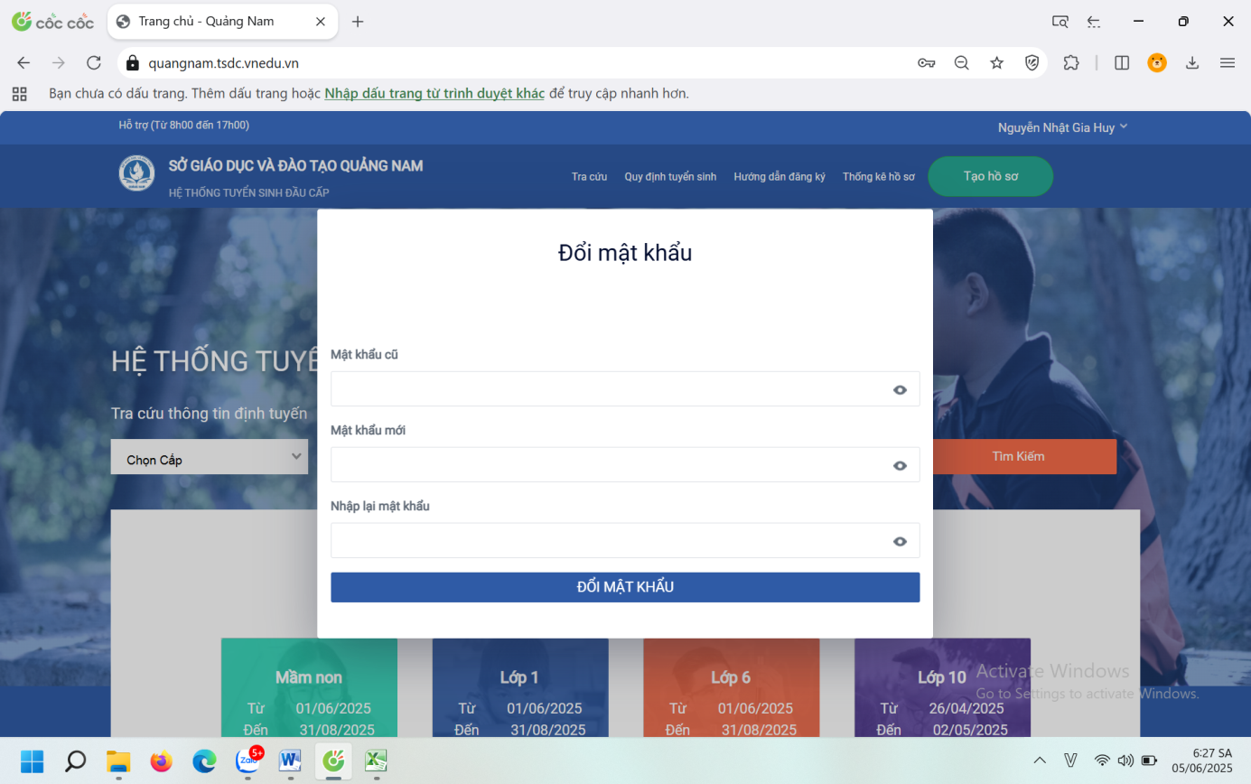 - Mật khẩu cũ: là mật khẩu trường tiểu học cấp