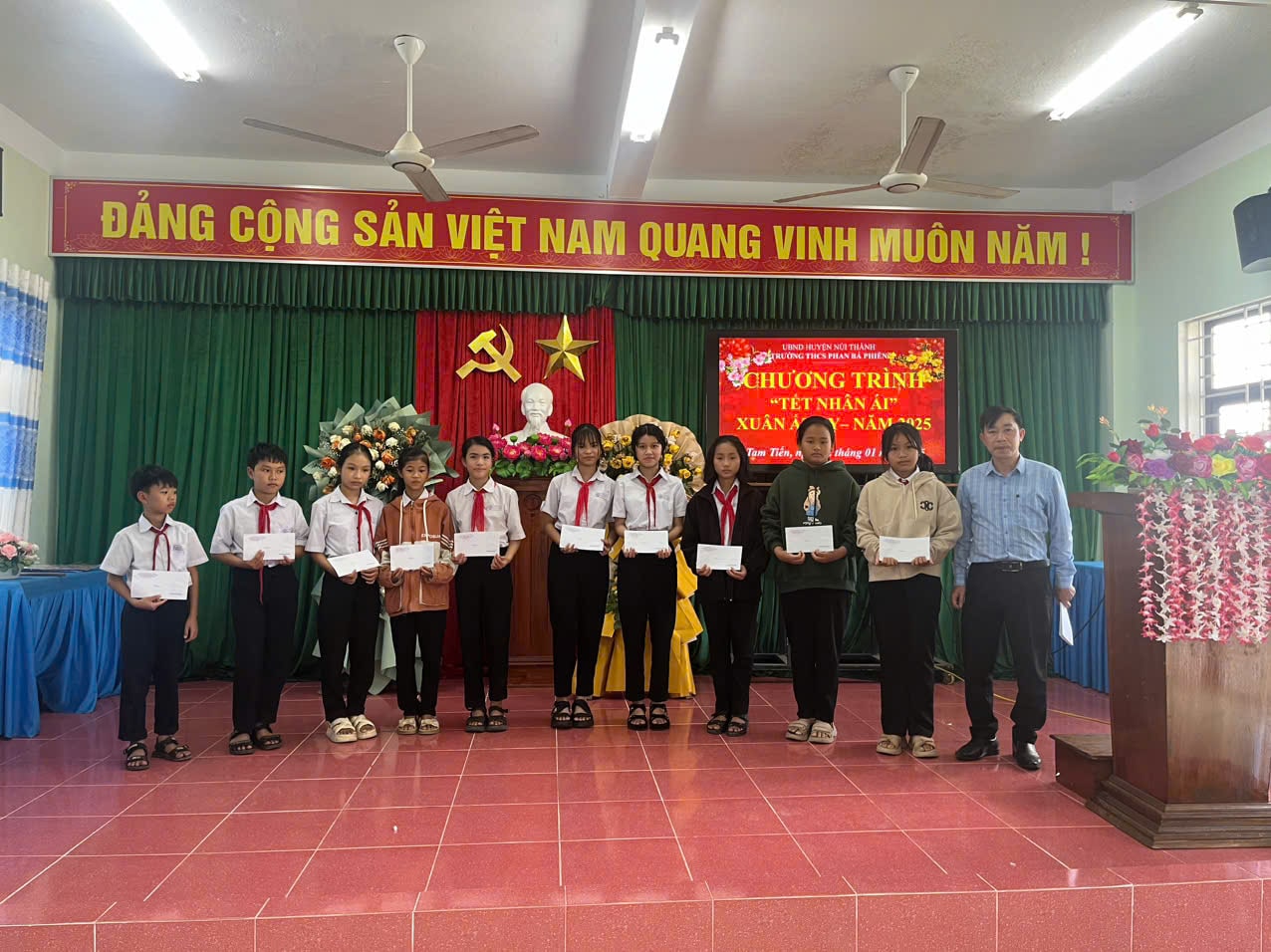 Mùa xuân, mùa của những yêu thương; mùa của sự đoàn viên, của Tết sum vầy đong đầy hạnh phúc. Xuân đến, ta chẳng những mở lòng mà đón lấy nhựa sống của đất trời, niềm hân hoan của lòng người mà còn là mùa của sự yêu thương, sẻ chia để hạnh phúc thực sự trọn vẹn. Bởi, đâu đó xung quanh chúng ta vẫn còn không ít những số phận hẩm hiu, những mảnh đời cơ cực, những sự cô đơn, bơ vơ đang cần lắm những yêu thương. Để chuẩn bị đón một mùa xuân và cái tết cổ truyền đong đầy hạnh phúc, trong những ngày cuối đông giá lạnh này, ta thấy sáng ấm lên biết bao nghĩa cử cao đẹp từ sự san sẻ yêu thương của các tổ chức đoàn thể xã hội, trường học đến các nhóm thiện nguyện, các mạnh thường quân…Những món quà tuy nho nhỏ thôi nhưng tình người thật lớn lao. Truyền thống “Thương người như thể thương thân” từ ngàn đời của người Việt ta thật sáng ấm biết bao trong những ngày này. Và ngay ở ngôi trường THCS Phan Bá Phiến thân yêu của chúng tôi, tình cảm ấm áp ấy vẫn luôn được các thế hệ thầy trò thắp sáng, sưởi ấm và lan tỏa những yêu thương. Với ý nghĩa ấy, đón Xuân Ất Tỵ 2025, thầy và trò nhà trường đã quyên góp được 12.900.000đ, trao 43 phần quà cho các em học sinh khó khăn. Đồng hành cùng nhà trường trao gửi những yêu thương, anh Nguyễn Quang Viên và anh Nguyễn Khoa - DataHouse, những người con ưu tú của quê hương Tam Tiến, hiện đang sinh sống và làm việc tại thành phố Hồ chí Minh cũng đã trao cho học sinh có hoàn cảnh đặc biệt của nhà trường 60 suất quà (trị giá 500.000đ/ mỗi suất). Thật trân quý biết bao những sẻ chia vô cùng ý nghĩa ấy!