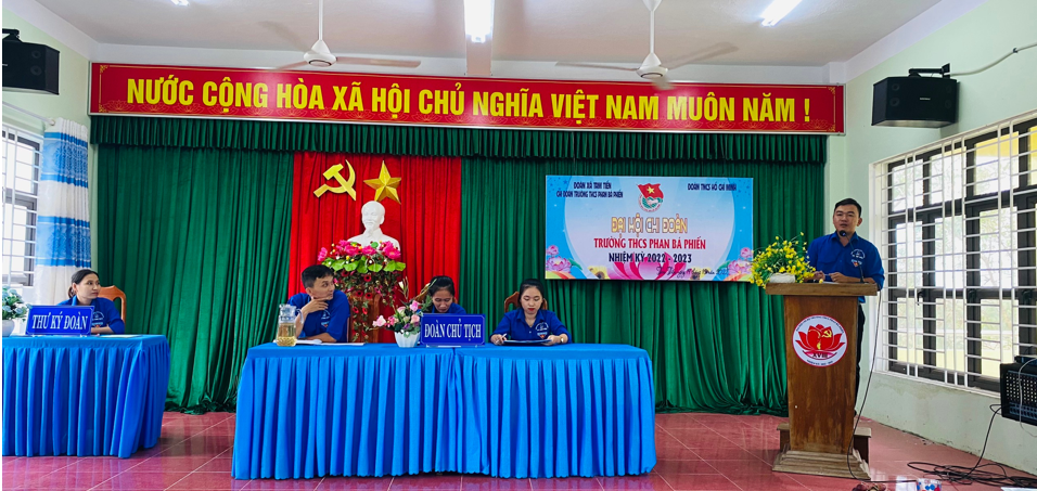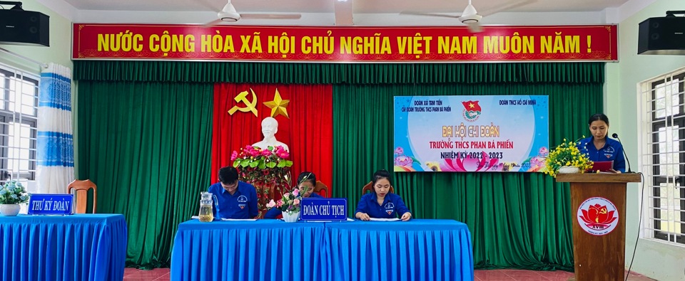 Căn cứ quyết định số 05/HĐ/ĐTN, ngày 21/12/2021 của Đoàn xã Tam Tiến về Hướng dẫn tổ chức Đại hội, Hội nghị chi Đoàn. Thực hiện theo kế hoạch số 01-KH/ĐTN, ngày 1/10/2022 của BCH Chi đoàn trường về Tổ chức Đại hội chi đoàn trường THCS Phan Bá Phiến, nhiệm kỳ 2022-2023. Được sự cho phép của Chi bộ, BGH trường THCS Phan Bá Phiến, BTV Đoàn xã Tam Tiến, ngày 19/10/2022, chi đoàn trường THCS Phan Bá Phiến đã long trọng tổ chức Đại hội chi đoàn, nhiệm kỳ 2022-2023.